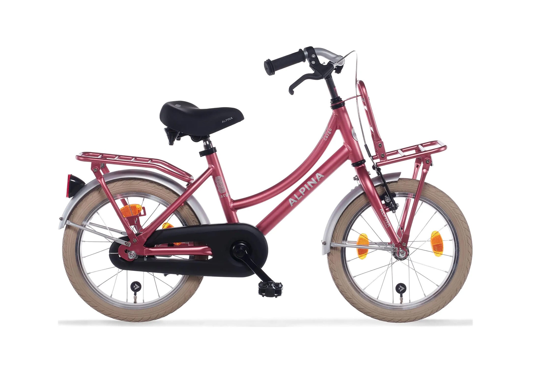 Samen met vriendinnetjes naar de speeltuin of zelf haar schoolspullen meenemen op de fiets. Met de Alpina Cargo wordt je dochter meteen een stuk zelfstandiger. De Alpina Cargo heeft namelijk een handige achterdrager en een voordrager. De betrouwbare terugtraprem van de Alpina Cargo zorgt er -samen met de handrem aan de voorzijde- voor dat ze veilig op pad kan. Aan de voor- en achterzijde en zelfs in de wielen zijn reflectoren bevestigd zodat je kleine ontdekker goed te zien is voor het andere verkeer.