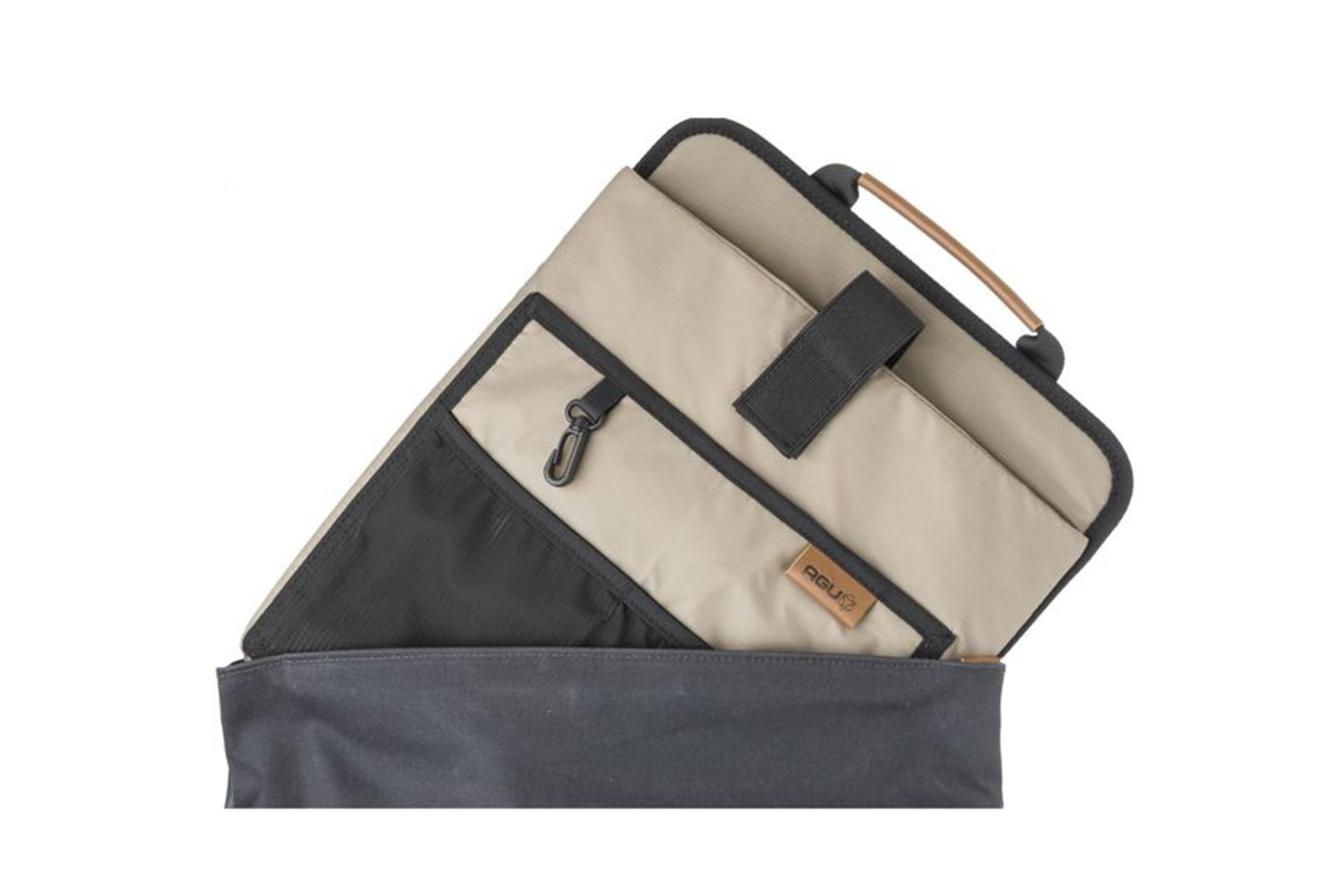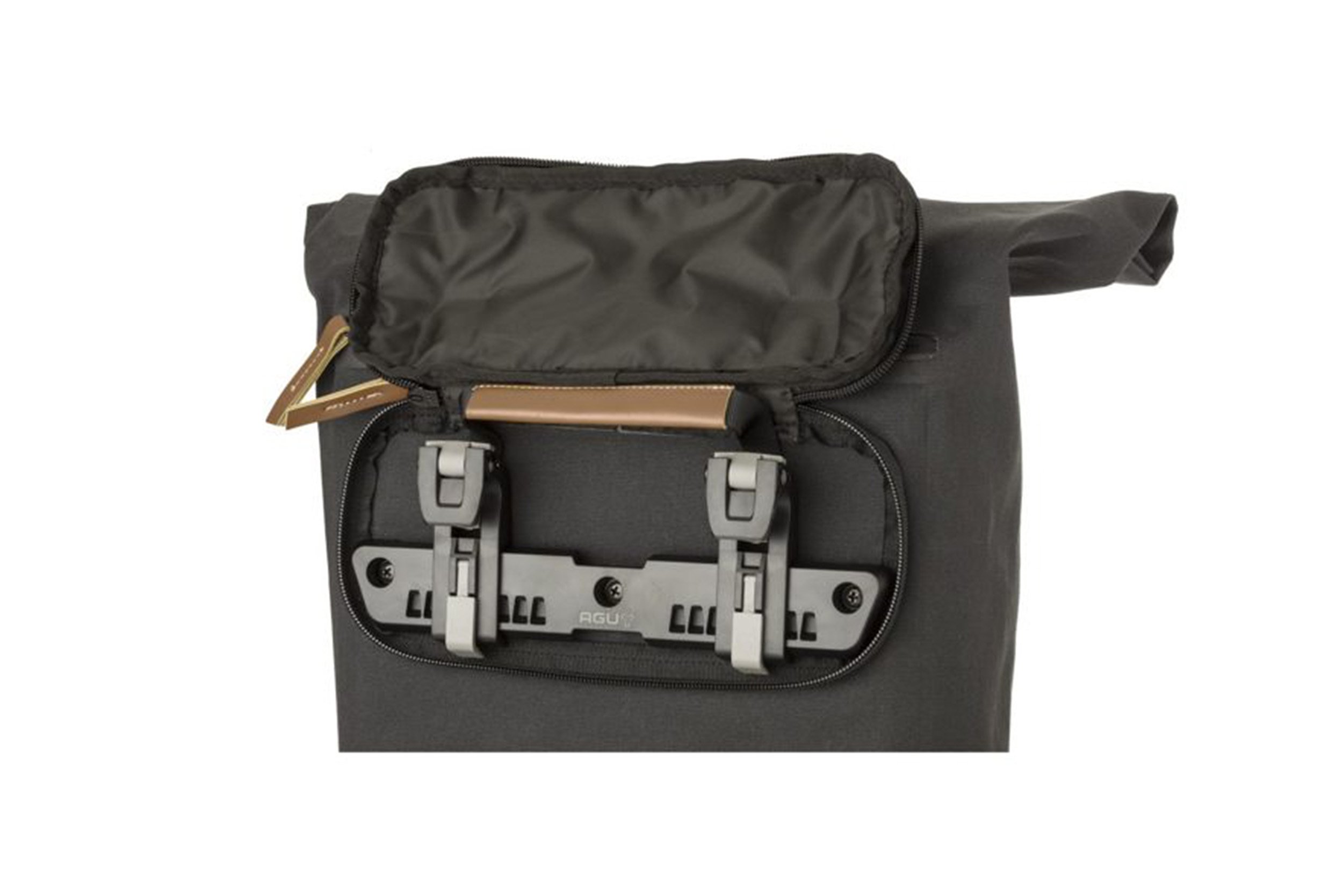 De tas is eenvoudig te bevestigen op de fiets middels het premium AGU Click’nGo Railed Hook bevestingssysteem.
