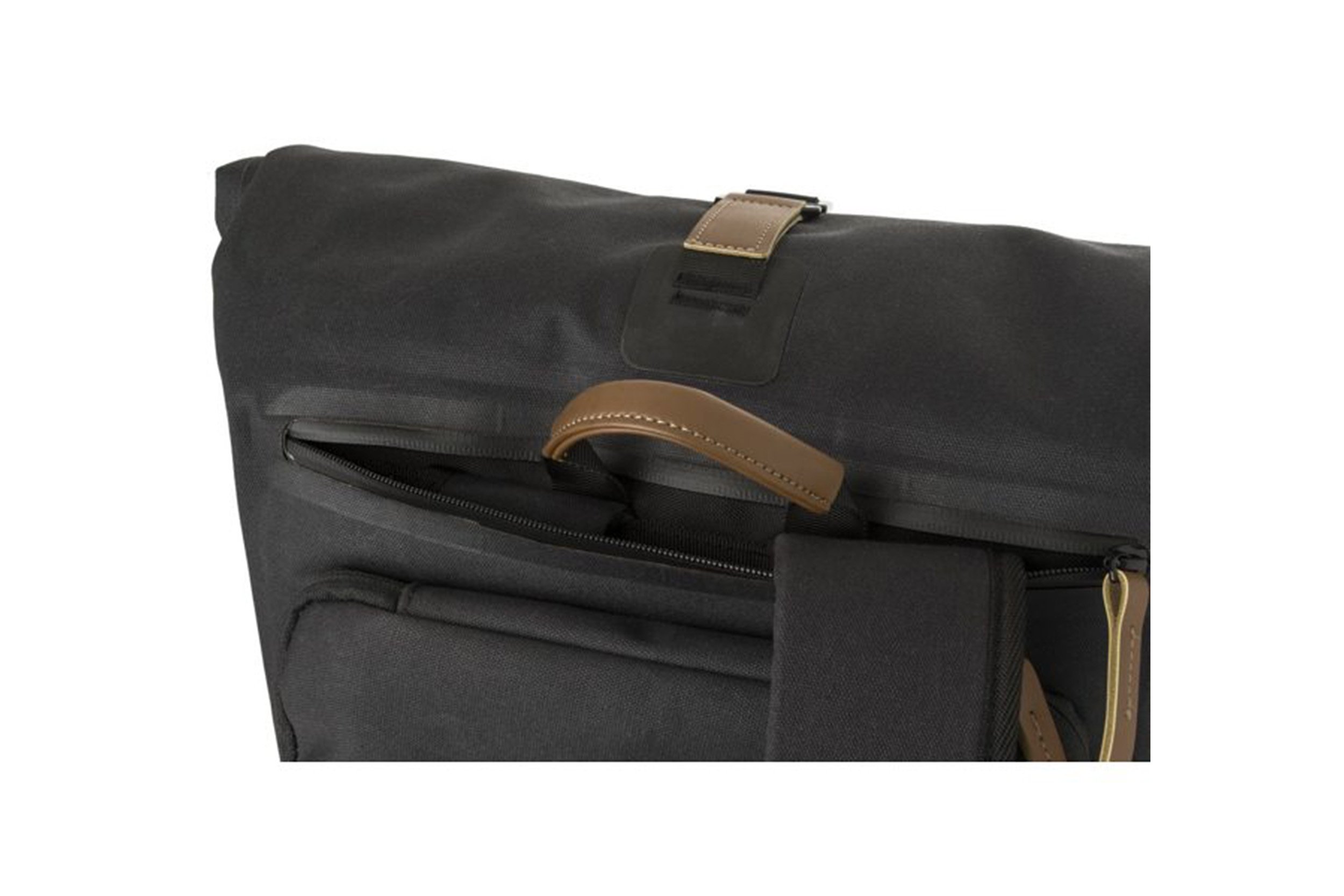 De tas gaat dicht met een magnetische roll-top sluiting en is extra vast te zetten met een haakje.