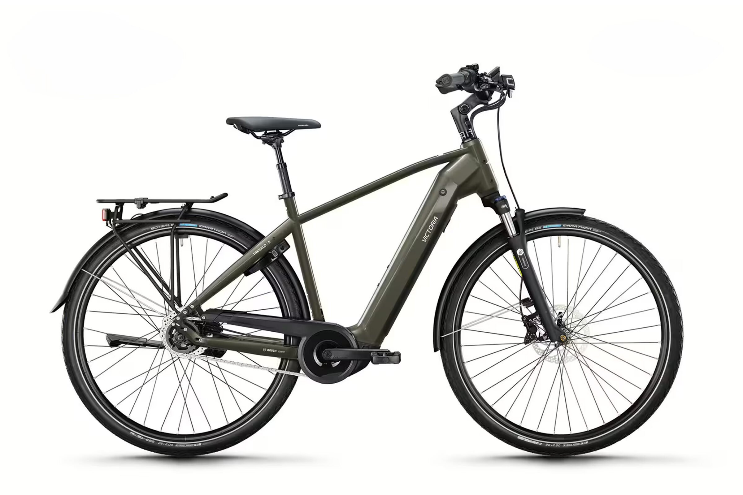 All-road e-bike voor dagelijks gebruik. De TRESALO 5 van VICTORIA is de ideale allrounder voor dagelijks gebruik, in de stad of op het platteland. Uitgerust met StVZO-conforme LED-verlichting en Schwalbe anti-lekbanden biedt hij veiligheid en duurzaamheid op al je routes. De bagagedrager van MIK maakt het gemakkelijk om tassen en manden te monteren en zorgt voor flexibiliteit in het dagelijks leven.